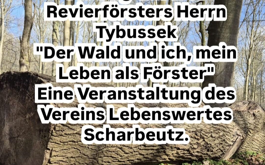Der Verein Lebenswertes Scharbeutz e. V. lädt herzlich ein zu einer Vortragsveranstaltung mit unserem Revierförster, Herrn Karsten Tybussek, welcher am Ende seines beruflichen Wirkens noch einmal zurückblickt und in seiner gewohnt begeisternden Art über seine Liebe zur Natur und deren Schutz referieren wird. Im Anschluss an den Vortrag besteht die Möglichkeit, in geselliger Runde den Verein und die anwesenden Mitglieder persönlich kennenzulernen. Wir freuen uns sehr auf zahlreiche interessierte Zuhörerinnen und Zuhörer am